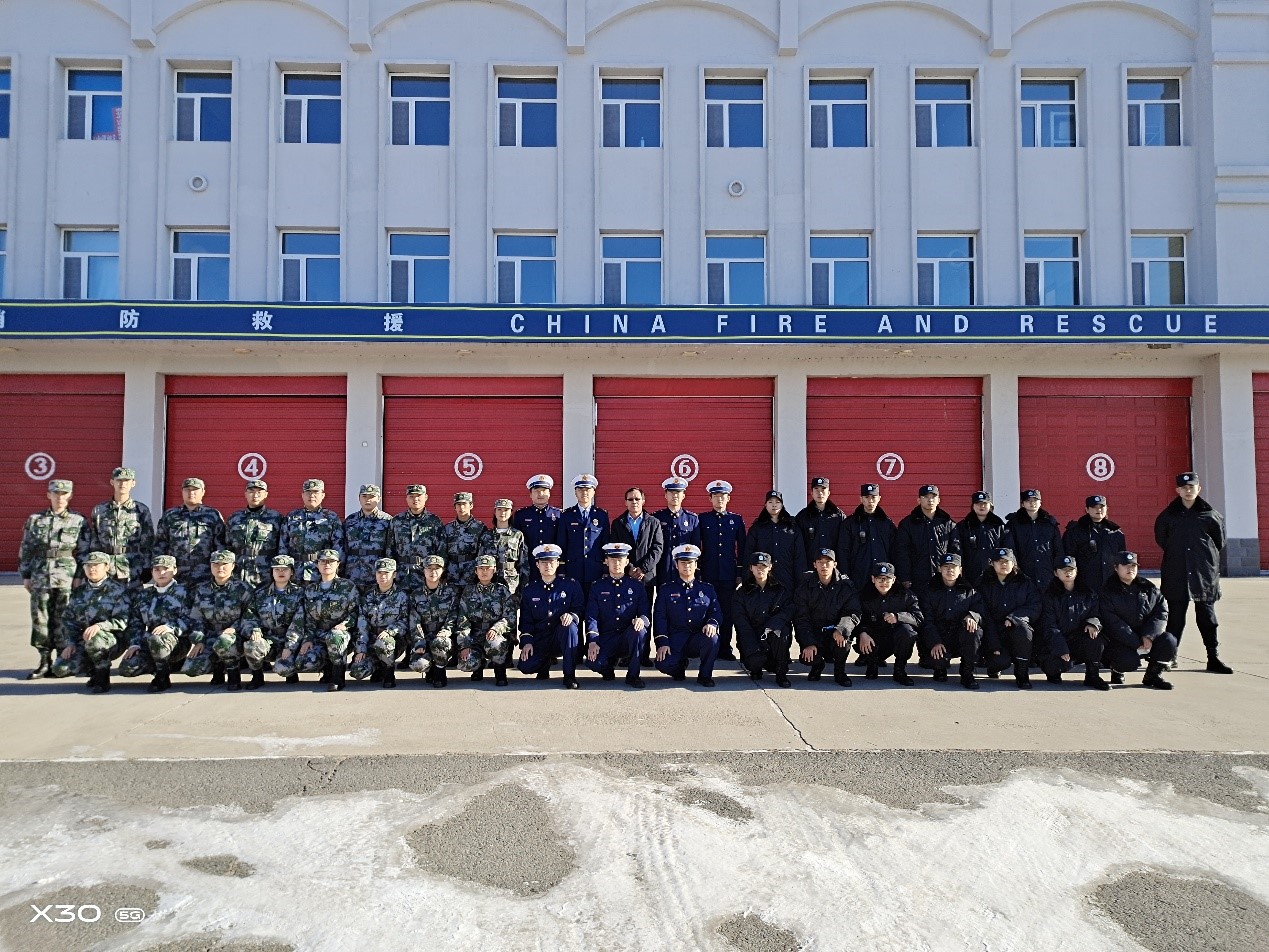2020年11月9日上午9:30时,呼伦贝尔职业技术学院校安处组织32名学生消防安全员和护校队员来到鄂温克旗消防救援大队,参加“119 消防宣传月启动仪式”暨学习培训活动。